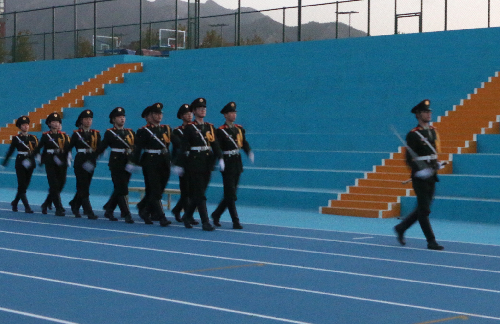 随着主持人宣布开幕仪式开始,国旗护卫队升起国旗,奏国歌,全体行注目礼,随后经济管理学院与化工学院的分别出各学院的院旗。