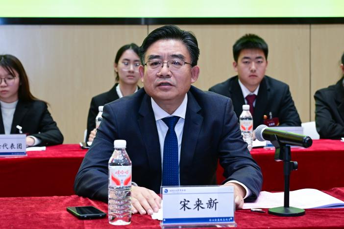 宋来新首先对大会的召开表示热烈祝贺。他指出,党的十八大以来,习近平总书记站在培养社会主义建设者和接班人、站在治国理政战略高度为青年工作掌舵领航,党的二十届四中全会和全国教育大会为教育发展指明了方向。学校党委始终全面贯彻习近平总书记关于青年工作的重要思想,坚持“党管青年原则”,将青年工作深度融入“双一流”建设和“十五五”发展大局,以“三全育人”“五育并举”落实立德树人根本任务。宋来新对过去一年学生会在思想政治引领、文化育人、权益维护、学风建设和实践活动等方面取得的进展表示充分肯定。他强调,今年是纪念中国人民抗日战争暨世界反法 西斯战争胜利八十周年,也是加快建设教育强国三年行动计划的起始之年,更是“十四五”“十五五”的交汇之年,学校各项事业的发展面临着新的要求与挑战。学生代表大会作为青年学生政治生活的大事,肩负着凝聚青年智慧、推动校园发展、助力教育强国建设的重任。针对学生会发展,他提出了几点希望:一是紧跟党的光辉旗帜,加强学生思想政治引领,在中国特色社会主义道路上走得更加坚定。广大学生会组织成员要持续深入学习习近平新时代中国特色社会主义思想,特别是习近平总书记关于青年工作的重要思想,深刻理解中华民族伟大复兴的历史大势。二是勠力同心牢记使命,服务学生全面成长成才。学生会组织要落实好“我为同学做实事”的工作要求,同时搭建广阔舞台,共同建设美丽美好创新上进正能量的校园生活。三是引领青年挺膺担当,以实际行动投身强国建设、民族复兴伟业的新征程。学生会要引领北化学子依托学校优势和特色资源平台,在国家急需的科技领域潜心钻研,以“十年磨一剑”的定力投身基础研究与核心技术攻关,以科技创新的实际行动贡献青春智慧与力量。