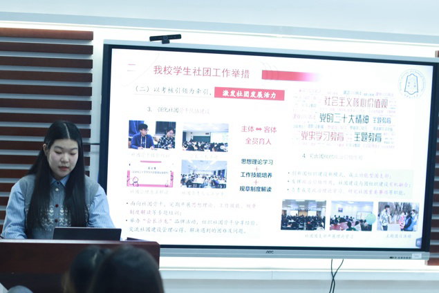 会上,北京化工大学团委学生社团指导部干部张慕瑶介绍了学生社团建设管理概况,就学生社团管理举措、业务指导单位及指导教师情况、社团扶持激励与保障、社团育人成效等方面进行了介绍。