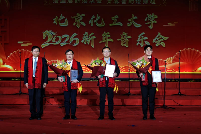 音乐会现场还对2025年度“北京化工大学校长奖”获奖师生进行表彰。化学学院教授孙晓明、生命科学与技术学院教授吴边、化学工程学院博士研究生刘迪荣获嘉奖。刘贵芹宣读表彰文件并勉励全校师生要向获奖者学习,深入学习习近平总书记关于教育的重要论述,全面贯彻党的二十届四中全会精神和全国教育大会精神,落实立德树人根本任务,发扬团结奉献、艰苦奋斗、务实力行、博学创新的化大精神,努力为谱写“强国建设、北化有为”新篇章作出新的更大贡献。谭天伟为获奖者颁发荣誉证书。