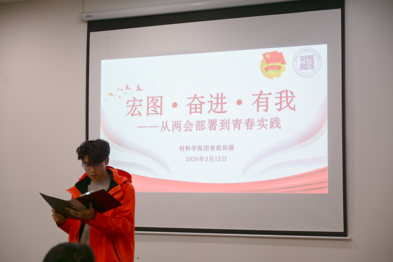 为深入学习2026年全国两会精神,引导广大团员青年把握时代脉搏、明确奋斗方向,3月12日晚,材料科学与工程学院团委于昌平校区图书馆第一会议室顺利开展“宏图·奋进·有我——从两会部署到青春实践”主题团课。学院团委书记及学生骨干参加本次团课学习。