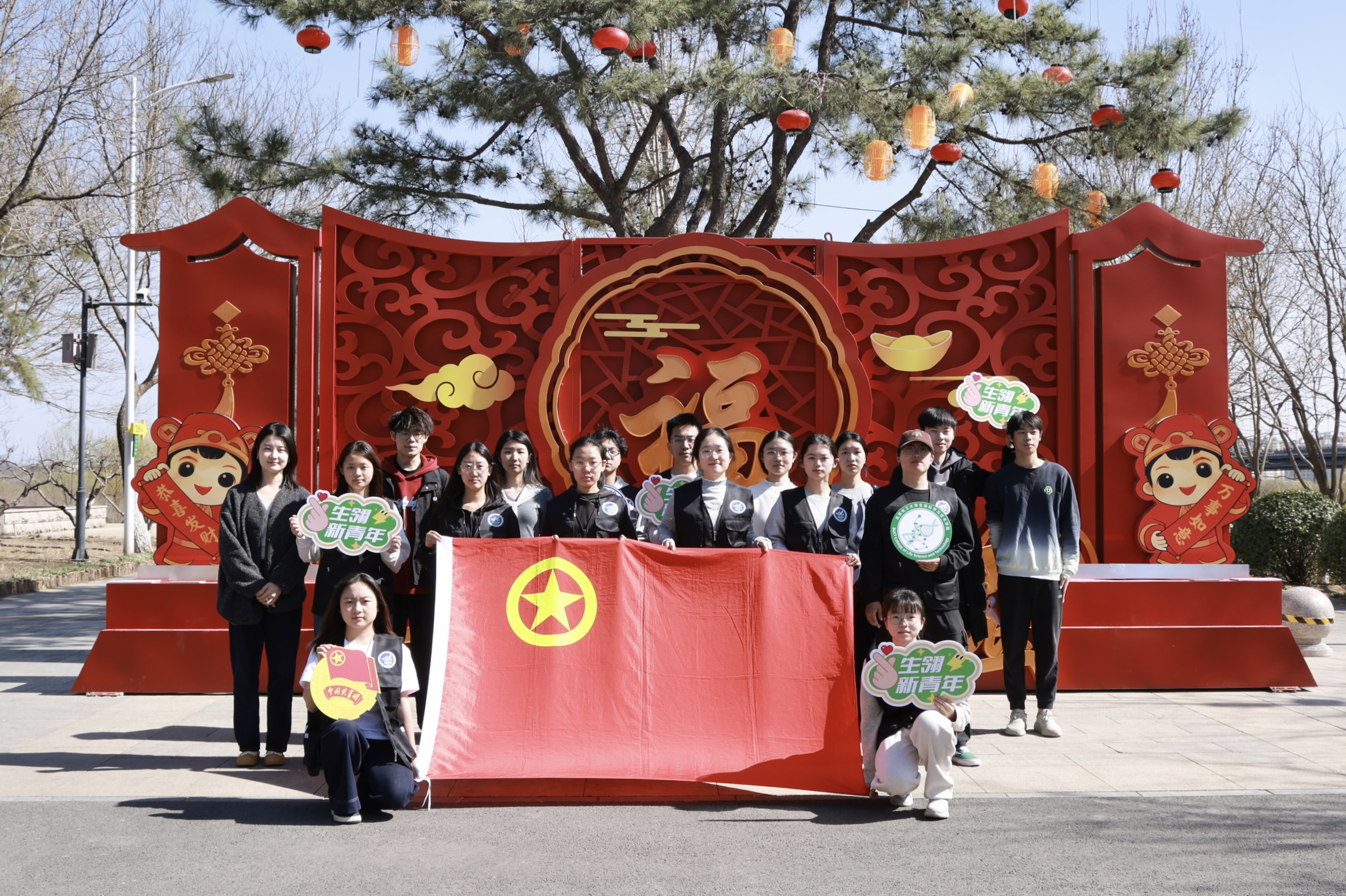 活动尾声,全体成员齐聚标志性建筑前合影留念。鲜红的院旗在和煦春风中迎风飘扬,与同学们朝气蓬勃的笑脸相映成趣,定格下青春与自然交融的美好瞬间。此次踏青实践活动,既是一场趣味盎然的春日之约,也是一堂意义深刻的环保课堂。大家在亲近自然、感受生机的过程中,进一步增强了生态保护意识;在团队协作与互动交流中,增进了彼此情谊,凝聚起蓬勃向上的青春力量,为春日实践画上圆满句号。